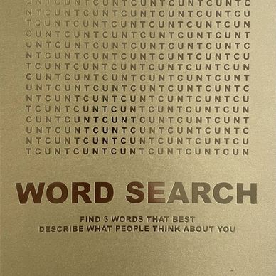 His art is characterized by its ability to make the viewer smile, often using words and phrases in gold leaf lettering to create comic and cathartic pieces.